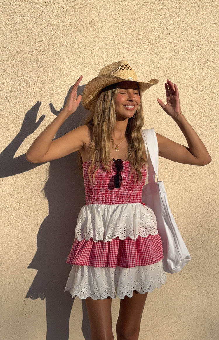 Our Red and White Strapless Mini Dress is a bold and feminine piece perfect for a summer weekend outing! The shirred elasticated bodice and tiered skirt detailing create a flattering silhouette, while the tie-up back adds a touch of charm. Pair it effortlessly with sandals or your favourite boots for a relaxed, yet stylish look!